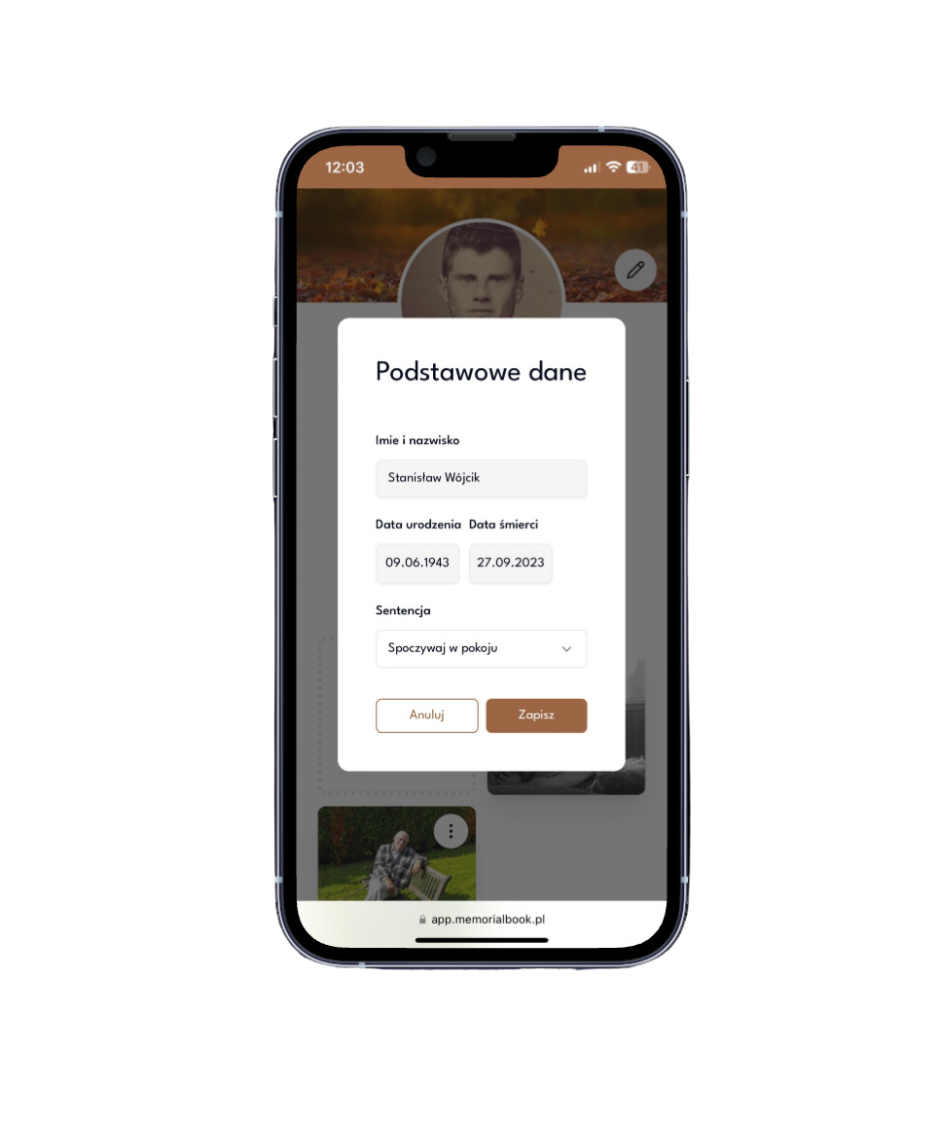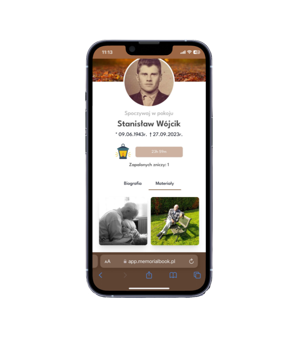 Po zakupie możesz w dowolnym momencie (wielokrotnie) dodawać i usuwać zdjęcia, filmy oraz biografię na platformie app.memorialbook.pl