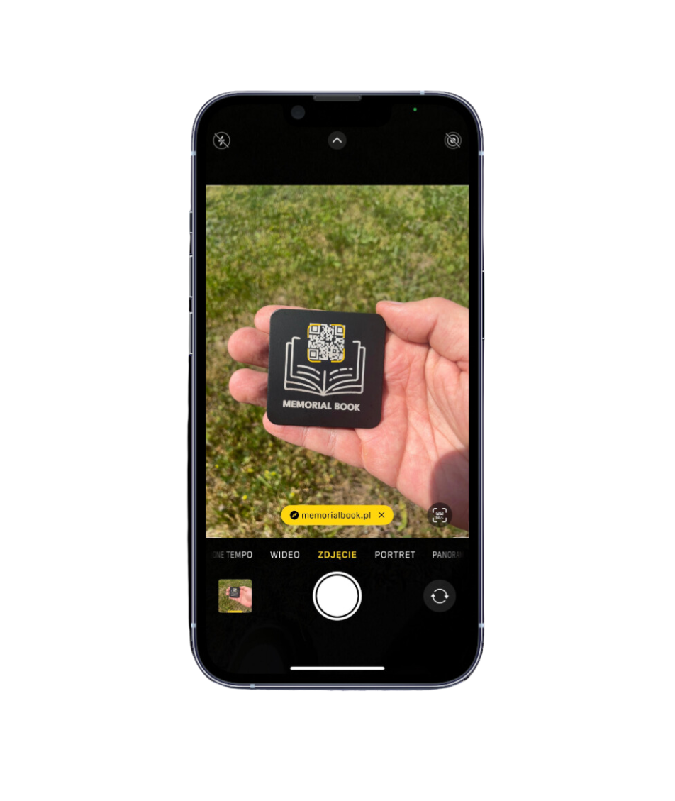 Użyj kamery w telefonie aby zeskanować kod QR Memorial Book.